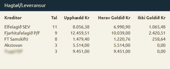 Hagtalsyvirlitið gevur tær eina samlaða mynd av hvussu tín støða er yvirfyri teimum ymsu kreditorunum.